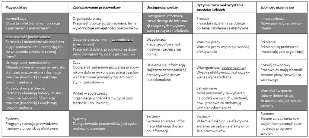 *trudne do prze­tłu­ma­cze­nia więc podaję w ory­gi­na­le: “In­c­lu­si­ve­nes: Part­ners and ma­na­gers col­la­bo­ra­te with em­ploy­ees and invites input.”
